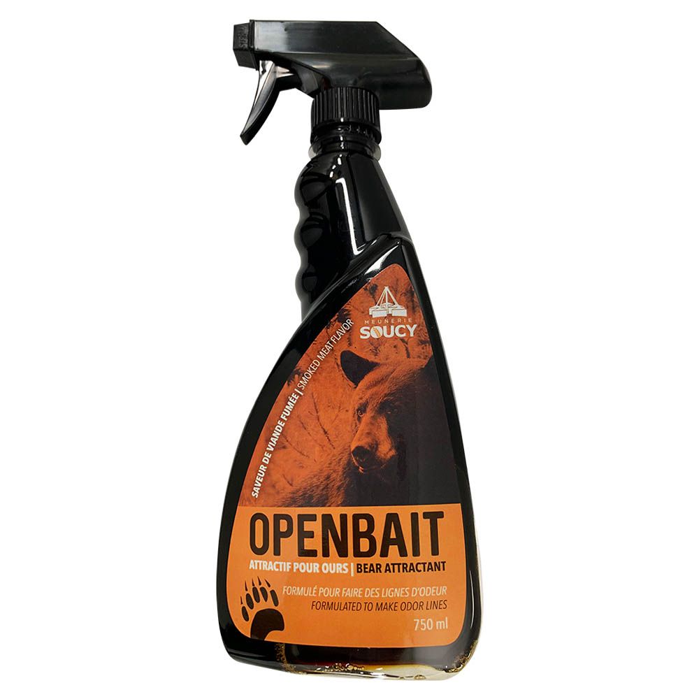 Open Bait est un leurre olfactif très puissant à odeur de côtes levées. Cette odeur irrésistible pour les ours est concentrée afin de les attirer de loin. Vaporisez Open Bait sur vos appâts, sur les branches ou tout simplement dans votre baril pour attirer les ours à l’endroit désiré!