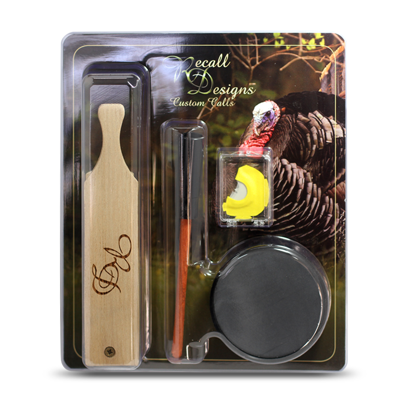 Cet ensemble contient : un diaphragme , un appeau a friction avec surface en ardoise ainsi qu'une boite à dindon et une craie